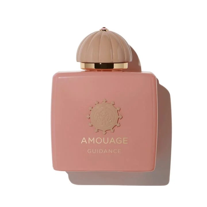 A spellbinding and novel interpretation of the Amouage triad of Rose, Frankincense and Ambergris, Guidance reads like a poem, smells like an embrace, and feels like a word of wisdom. An ivory tower wreathed in shreds of clouds, dewy mists of Pear, and beads of Frankincense draw the outlines of a dreamful haven. A princess leads the way to a lush garden where Osmanthus blossoms diffuse their heady apricot scent. A fountain gleams, its marble edge covered in scarlet roses whose voluptuous scent meets that of leathery Saffron threads. Through Jasmine screens, the woman walks and there comes with her a scent of dark Vanilla, skinlike Sandalwood, ambery Labdanum and hints of regal Ambergris: who are you, she asks, and you feel seen.